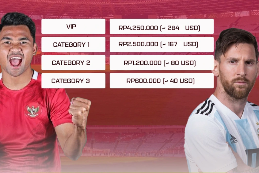 Mới đây, Liên đoàn bóng đá Indonesia (PSSI) công bố 4 mức giá vé vào "chảo lửa" Gelora Bung Karno xem trực tiếp trận giao hữu này.