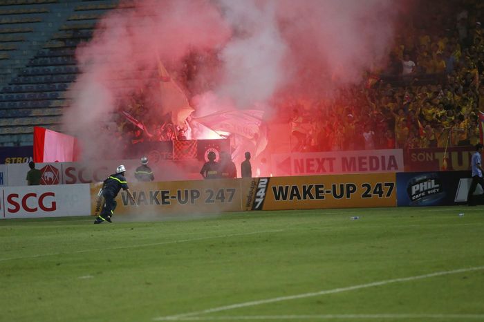 Theo đó, khi trận đấu giữa CLB Hà Nội và Nam Định đang diễn ra thì bất ngờ một CĐV nữ của CLB Hà Nội ở khán đài A sân Hàng Đẫy bị thương vì một quả pháo sáng bắn từ khán đài của CĐV Nam Định.