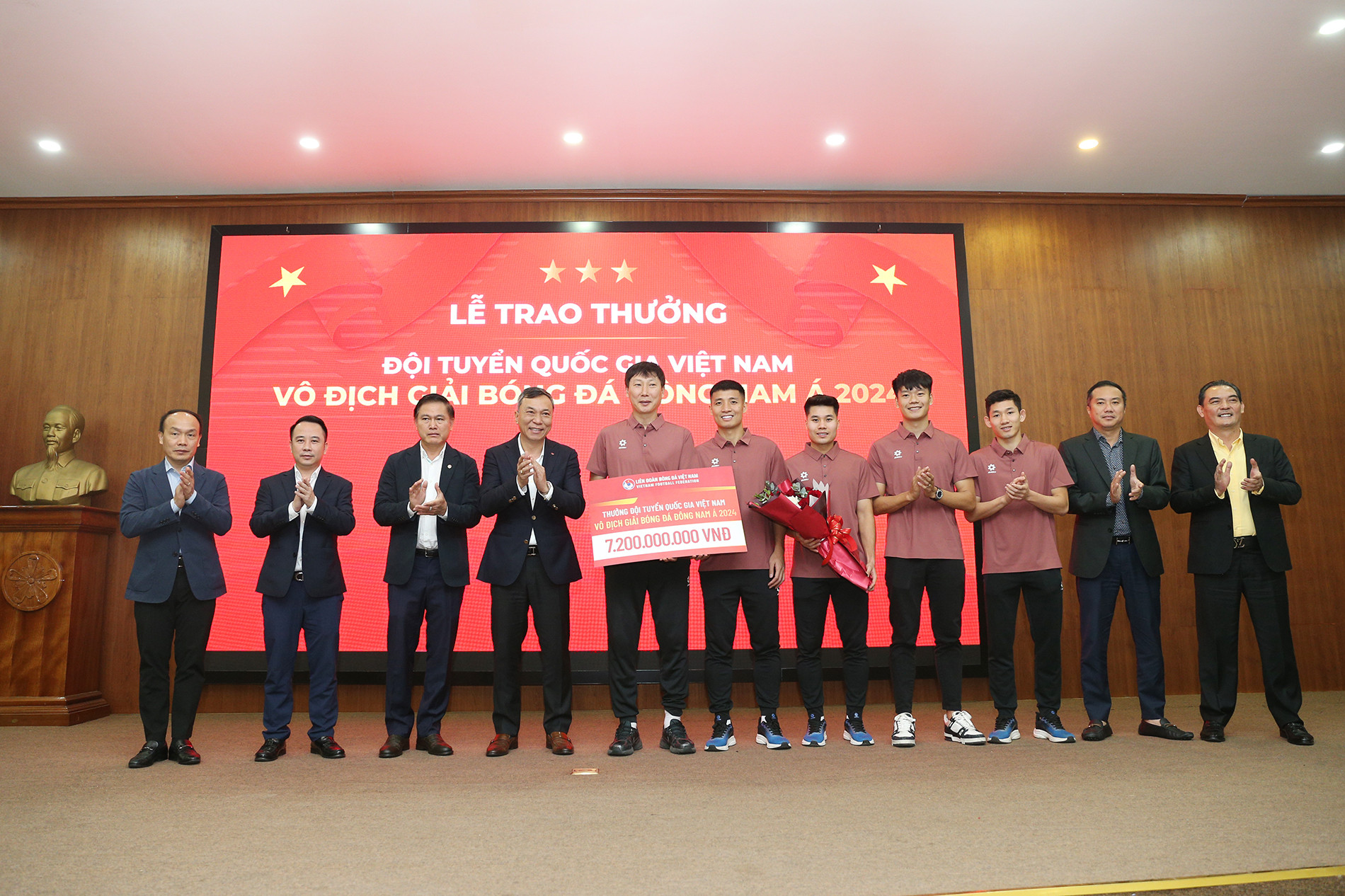 Trong sáng 8/1, VFF tổ chức lễ trao thưởng cho tuyển Việt Nam sau thành tích vô địch ASEAN Cup. Hiện tại, thầy trò HLV Kim Sang Sik được thưởng khoảng 35 tỉ đồng.