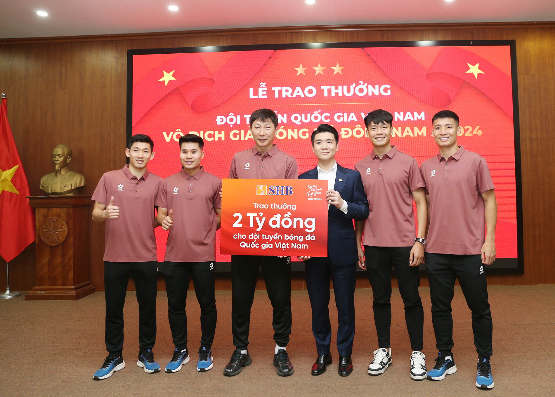 "Chúng tôi rất vinh dự trao tặng các phần thưởng vô cùng giá trị tới đội tuyển Việt Nam. Với trận chung kết trên đất Thái, chúng tôi tổ chức 8 chuyến bay đưa 600 CĐV Việt Nam qua Thái Lan cổ vũ. Đó là những chuyến bay lịch sử vì mang trên mình trọng trách, sự tự hào của người Việt Nam dành cho bóng đá Việt Nam", Phó Chủ tịch HĐQT SHB Đỗ Quang Vinh, một trong những Mạnh thường quân của tuyển Việt Nam nói.