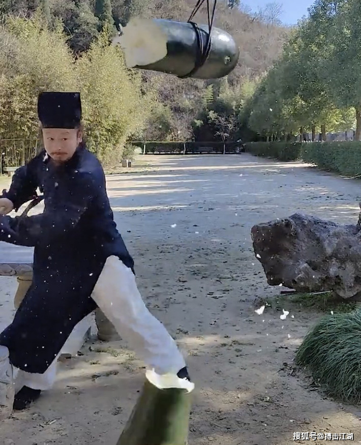 Mới đây, Chưởng môn Võ Đang Trần Sư Hành đã đăng tải clip thi triển côn pháp theo cách khác lạ. Thay vì luyện các chiêu thức thì ông dùng sợi dây treo một trái dưa lên cây, sau đó dùng trường côn vụt đứt trái dưa này thành nhiều mảnh.