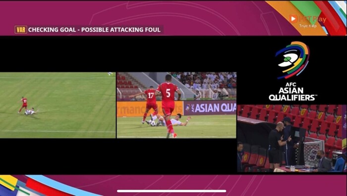 Tình huống mà ông Gabriel Tan đặt dấu hỏi là trọng tài kiểm tra VAR theo kiểu "soi mói" như muốn cố tìm ra điểm sai để phủ nhận bàn thắng mở tỷ số của Tiến Linh.