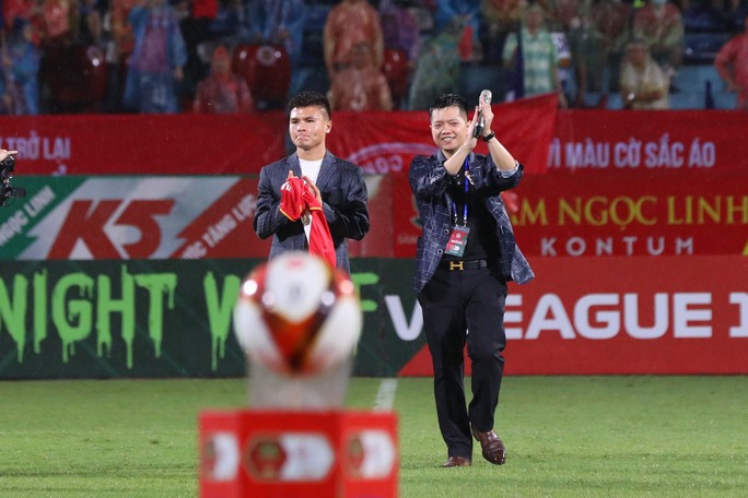 Ở trận đấu cùng khung giờ, Quang Hải đã xuất hiện và ra mắt người hâm mộ CLB CAHN trong ngày đại diện Thủ đô giành chiến thắng và giành ngôi đầu V-League khi hơn Thanh Hóa 1 điểm.