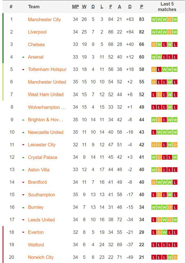 Trận thua này khiến Norwich chôn chân ở vị trí cuối bảng xếp hạng và trở thành CLB đầu tiên phải xuống hạng tại Ngoại hạng Anh mùa này. Sau 34 trận đã đấu, Norwich chỉ thắng 5 trận, hòa 6 trận và thua 23 trận, giành vỏn vẹn 21 điểm. Hiện tại, họ đã kém đội ở vị trí an toàn gần nhất là Leeds Utd 13 điểm nhưng chỉ còn 4 trận chưa đấu. Ngay cả khi toàn thắng 4 trận đấu đó, Norwich cũng không thể san bằng khoảng cách với Leeds.