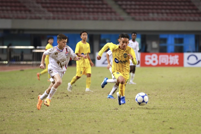 | Siêu phẩm sút xa của cầu thủ nhí U12 SLNA vào lưới U12 Lyon (Clip: SLNA) |