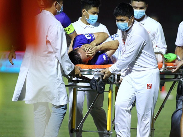 | Cú xoạc bóng khiến Hùng Dũng rời sân bằng xe cứu thương |