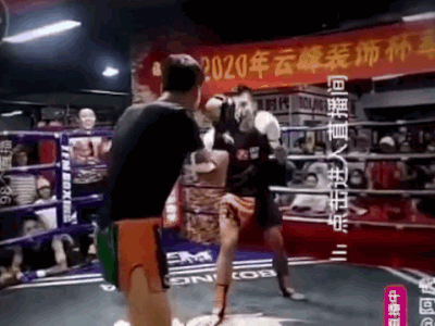 Trận so tài giữa võ sư Thái Cực quyền Ye Tin và cao thủ kickboxing Ahu diễn ra vào tuần trước ở Trung Quốc.