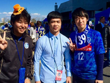 Có mặt tại sân K’s Denki, sân nhà của CLB Mito Hollyhock trưa nay 1/11 theo dõi trận đấu tại vòng 39 J.League 2 với đối thủ ThespaKusatsu Guma, Công Phượng nhanh chóng được nhận ra và được các CĐV chào đón niềm nở.