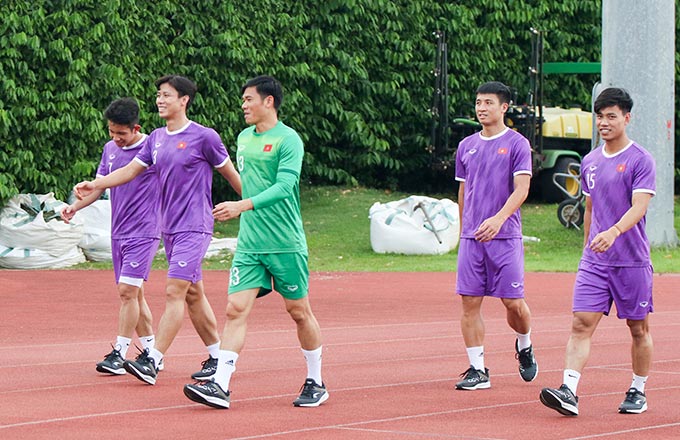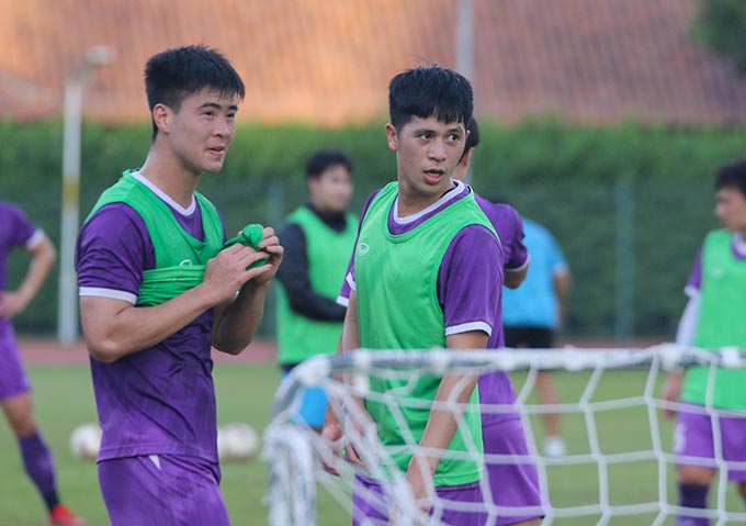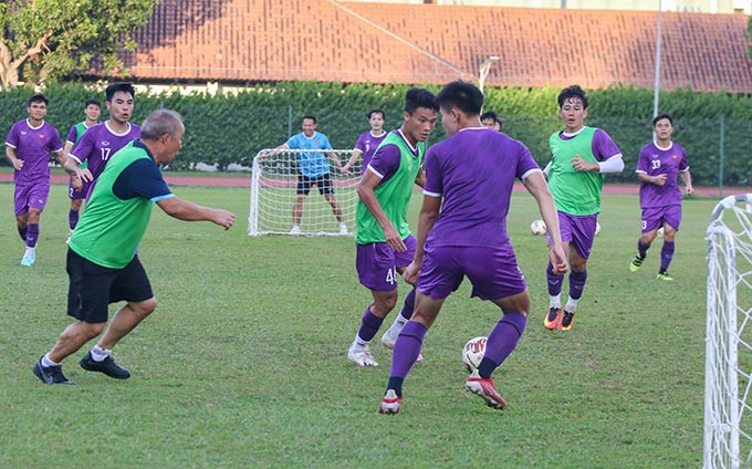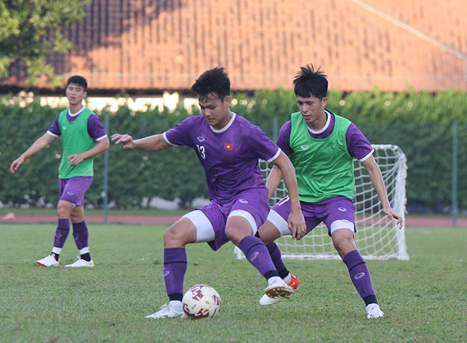 Riêng nhóm các cầu thủ chưa được đăng ký thi đấu và các cầu thủ dự bị ở trận đấu gặp Indonesia được giữ nhịp vận động với cường độ cao thông qua nội dung đá gôn nhỏ 8×8.