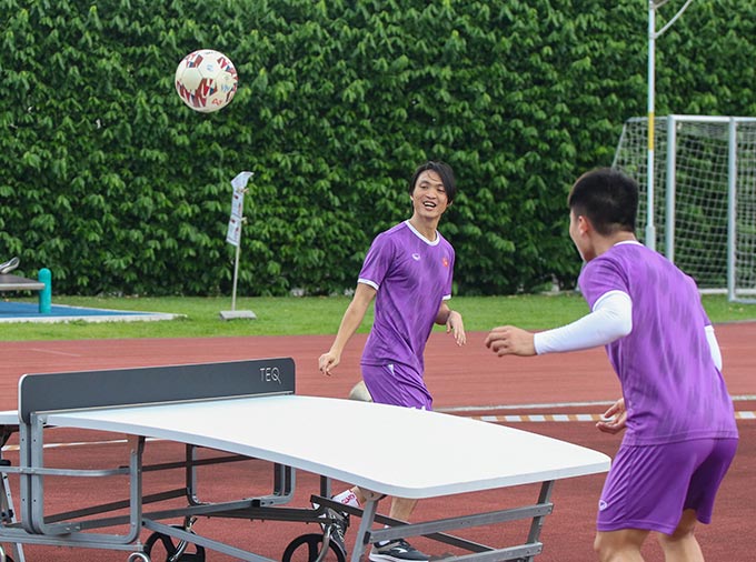 Do mới trải qua thi đấu, nên tại buổi tập này, nhóm các cầu thủ đá chính trận gặp Indonesia được tự do chơi các trò chơi vận động tùy theo sở thích từng người. Một số cầu thủ lựa chọn đi bộ thư giãn gân cốt, số khác rủ nhau thi tài với môn tedball (môn thể thao được chơi trên một bàn cong, phân cách bởi một tấm lưới nhựa ở giữa và người chơi sử dụng trái banh trong môn bóng đá để đưa qua lại giữa 2 bên).