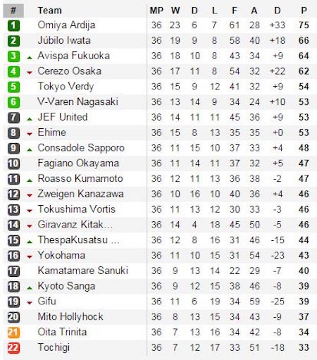 BXH tạm thời của J-League 2 |