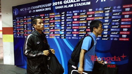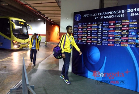 18h35': Hai tiếng trước khi trận đấu bắt đầu, xe chở đoàn U23 Malaysia và U23 Việt Nam đã có mặt sân Shah Alam. Cầu thủ 2 đội tiến vào phòng thay đồ họp chiến thuật trước khi ra sân khởi động.