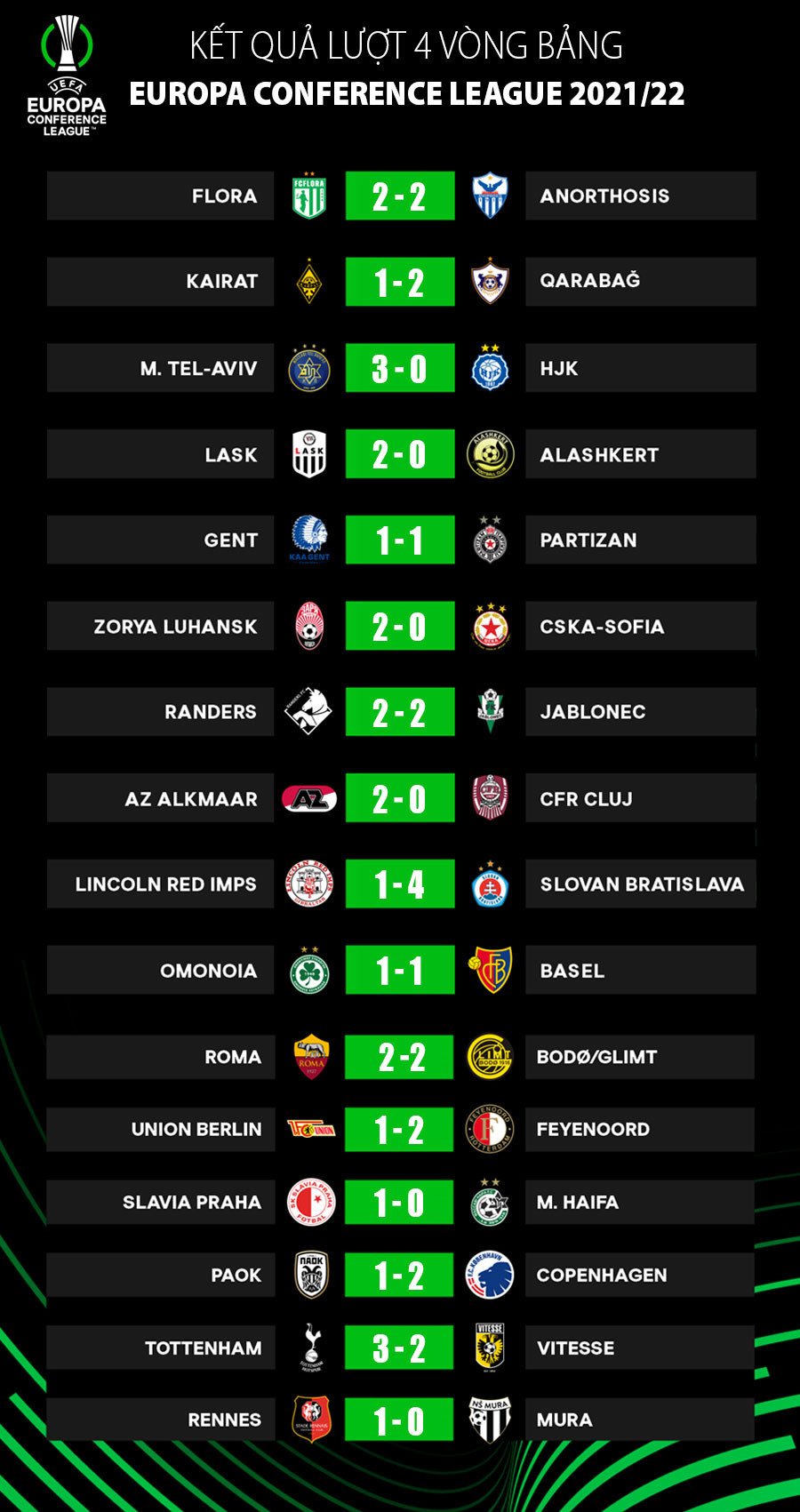 Thắng chung cuộc 3-2, Conte có màn ra mắt khá thuận lợi với Tottenham. Như vậy, sau 4 trận, Spurs giành được 7 điểm và xếp thứ 2 bảng G Europa Conference League.