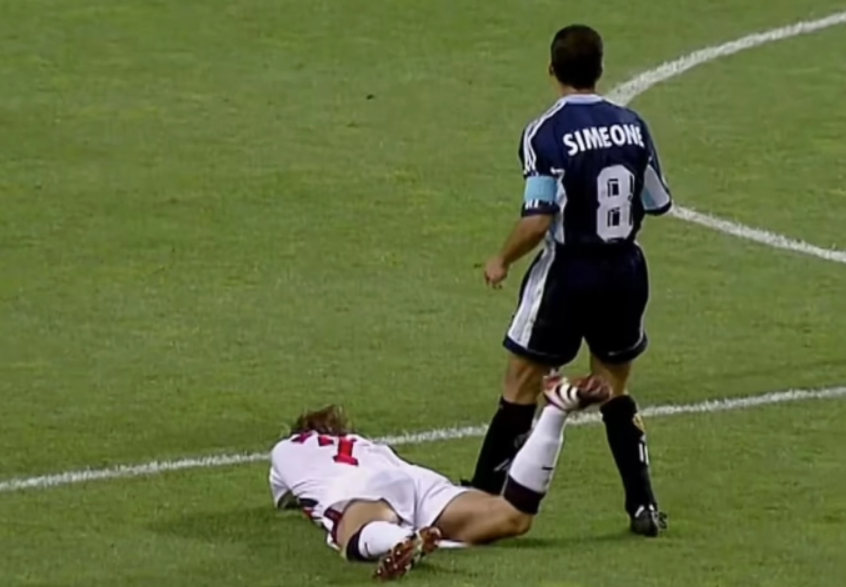 Tình huống diễn ra trong trận đấu tại vòng 1/8 của World Cup 1998 giữa tuyển Anh và Argentina. Vào hiệp 2, khi tỷ số đang là 2-2, Beckham bị Diego Simeone phạm lỗi ở giữa sân. Khi ngồi dậy, Simeone đã có tình huống chơi tiểu xảo vào gáy của Beckham. Đáp trả, cựu danh thủ người Anh lấy chân gạt trúng phần bắp đùi của đối thủ.