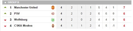 Cục diện bảng B lúc này trở nên vô cùng khó đoán, khi cơ hội vẫn dành cho cả 4 đội bóng. M.U lúc này có lợi thế nhất với 7 điểm và lượt trận tới được thi đấu trên sân nhà và gặp đội đứng ngay sau là PSV. Nhiều khả năng, 2 tấm vé đi tiếp của bảng đấu sẽ chỉ được quyết định ở lượt trận cuối cùng.