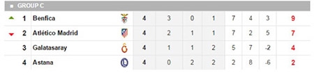 Benfica tiến gần hơn tới tấm vé vào vòng knock-out khi đánh bại đối thủ cạnh tranh trực tiếp là Galatasaray. Chỉ cần giành trọn 3 điểm trước Astana ở lượt tới, đại diện của Bồ Đào Nha sẽ giành vé đi tiếp. Trong khi đó, Atletico Madrid phải tự quyết định số phận của mình trước Galatasaray. Nếu 2 đội đầu bảng cùng giành chiến thắng ở lượt tới, cục diện bảng đấu sẽ an bài.