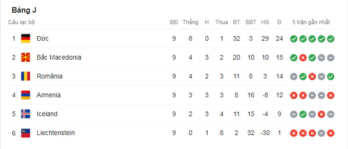 ĐT Đức đã sớm có vé chính thức dự VCK World Cup 2022 từ vòng đấu trước. Ở lượt trận này, họ tiếp tục thể hiện sức mạnh áp đảo khi hủy diệt Liechtenstein với tỷ số 9-0. Ở 2 trận đấu còn lại, Bắc Macedonia đánh bại Armenia 5-0 trong khi Romania hòa Iceland 0-0.