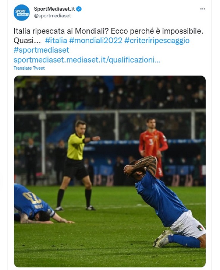 Tuy nhiên, theo các tờ báo uy tín của Italia gồm Sport Mediaset, Sky Sport Italia và Sportitalia, nhà vô địch Euro 2020 có thể được đặc cách tham dự giải đấu ở Qatar diễn ra vào cuối năm nay nếu Iran bị loại.