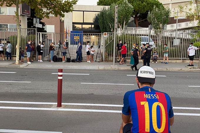 Các CĐV tụ tập rất đông bên ngoài SVĐ Nou Camp bất chấp nguy cơ lây nhiễm COVID-19