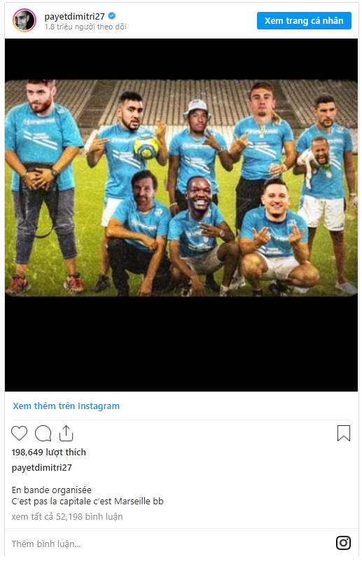Theo đó, cựu cầu thủ West Ham đã đăng tải tấm hình chụp ban nhạc rap của Pháp mang tên Bande Organisée nhưng thay vì khuôn mặt các ca sĩ, Payet lại ghép mặt các cầu thủ của Marseille.