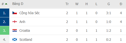 Trận đấu kết thúc với tỉ số 0-0. Với 4 điểm trong tay, đội tuyển Anh tạm thời xếp nhì bảng sau CH Séc. Với thể thức tại Euro 2020, Tam sư gần như chắc chắn có tấm vé lọt vào vòng 1/8. Tuy nhiên, những gì mà họ thể hiện cho tới lúc này khiến người hâm mộ khá lo lắng ở chặng đường trước mắt.