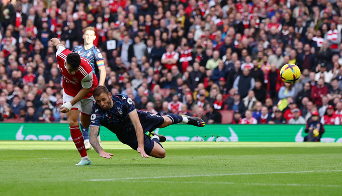 Tới phút 52, Odegaard và Jesus bình tĩnh phối hợp trong vòng cấm. Jesus sau đó căng ngang vào trong để Nelson đệm bóng cận thành nâng tỷ số lên 3-0 cho đội chủ nhà.