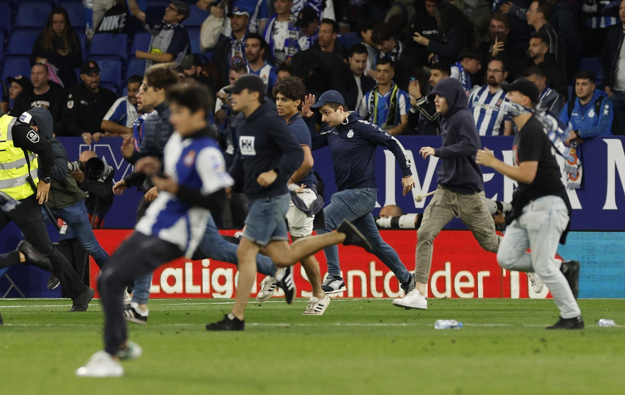 Tuy nhiên, niềm vui của Barcelona không kéo dài được lâu. Cay cú vì đội nhà thua trận và nguy cơ phải xuống hạng, trong khi đại kình địch lại ăn mừng tưng bừng, khá đông CĐV của Espanyol tràn xuống sân, cầm theo ghế và vật cứng đuổi theo các cầu thủ Barca với vẻ tức giận.