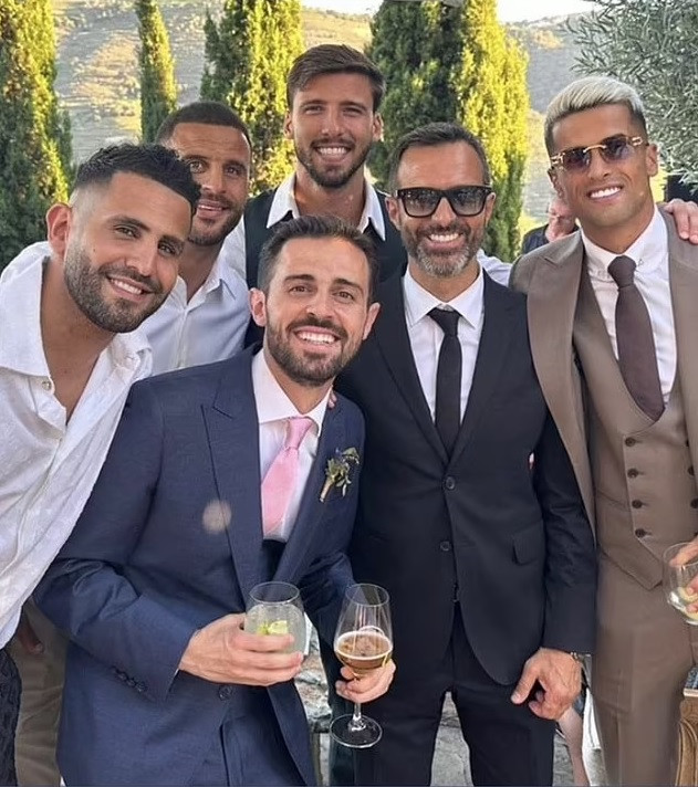 Các đồng đội tại Man City như Riyad Mahrez, Ruben Dias, Kyle Walker và cả Joao Cancelo, người vừa được Bayern ‘trả’ về sau thời gian mượn, cũng là đồng đội ở tuyển Bồ Đào Nha, đã có mặt chia vui cùng cô dâu Ines Tomaz và chú rể Bernardo Silva.