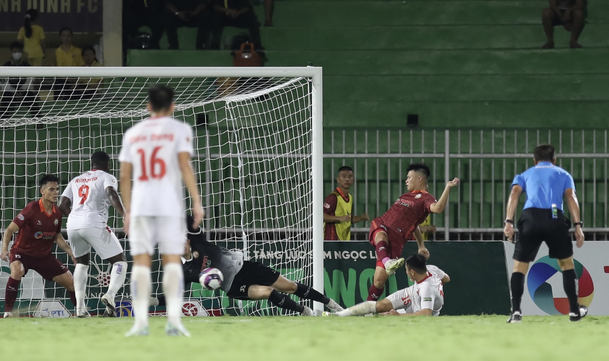 Sau đó không lâu, Triệu Việt Hưng chọc khe thuận lợi cho Rimarido băng xuống đối mặt Văn Lâm, nhưng tiền đạo này lại sút bóng ra ngoài. Các cầu thủ đội khách đã ngồi thụp xuống sân thất vọng, vì pha hỏng ăn của tiền đạo đã ghi đến 12 bàn tại V.League trước đó.