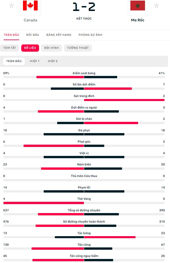 Ở sân Al Thumama, Canada vẫn chơi thứ bóng đá mạnh mẽ, xông xáo nhưng ít toan tính. Hệ quả là trong khi những tình huống pressing của họ tỏ ra không hiệu quả, thì tuyến dưới lại lộ ra quá nhiều khoảng trống. Mà khi đối thủ là một Morocco hơn hẳn về nền tảng kỹ thuật và kinh nghiệm chinh chiến, Canada đã phải trả giá.