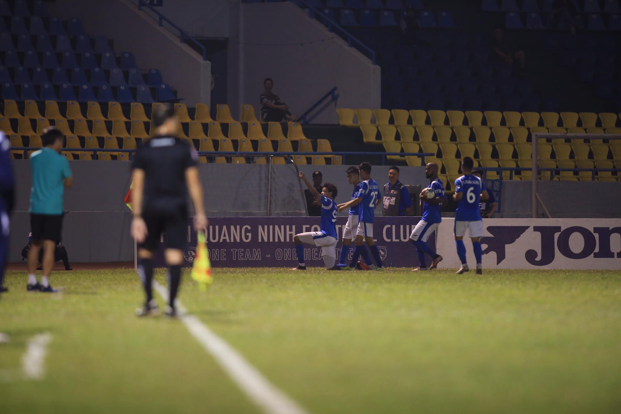 Phút 37, Văn Sơn đánh đầu chuyền về, Thanh Thắng chần chừ không ra dứt khoát để Quách Tân băng xuống, dứt điểm qua đầu nâng tỷ số lên 2-0 cho Than.QN.
