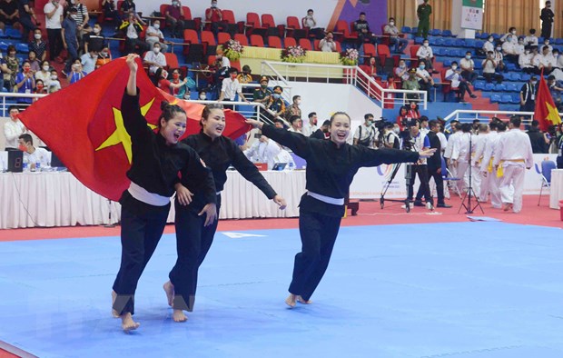 Còn ở môn Pencak Silat, Vương Thị Bình-Nguyễn Thị Thu Hà-Nguyễn Thị Huyền đã giành huy chương Vàng đồng đội nữ (Regu).