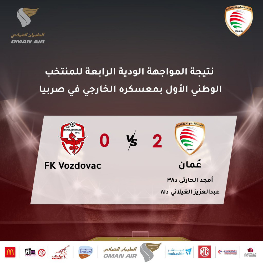 Đáng chú ý, chiến thắng trước Vozdovac đã giúp tuyển Oman kết thúc chuyến tập huấn ở châu Âu với thành tích toàn thắng. Trước đó, họ đánh bại những đội bóng như Kolubara, Qatar Sports Club và Spartak Subotica.