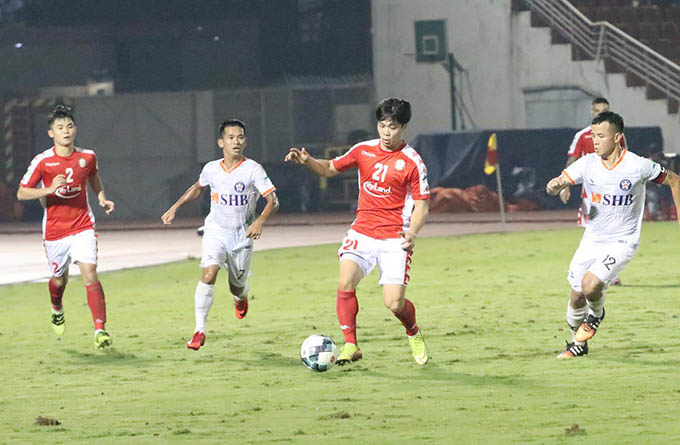 Đầu hiệp 2, TP.HCM tung Công Phượng vào sân để hy vọng tìm kiếm sự đột biến trên hàng công. Tuy nhiên, chân sút này đã bị các hậu vệ của SHB.ĐN chăm sóc rất kỹ nên không thể ghi dấu ấn nào đáng kể.