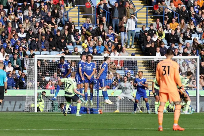 Dù vắng Haaland nhưng Man City vẫn quá mạnh so với Leicester. Bằng chứng là sau tiếng còi khai cuộc, The Citizens nhanh chóng chiếm lĩnh tuyến giữa và đẩy đội chủ nhà phải co cụm phòng ngự bên phần sân nhà. "Chiếc xe buýt 2 tầng" được Leicester dựng lên nhằm hóa giải sức mạnh tấn công từ Man City.