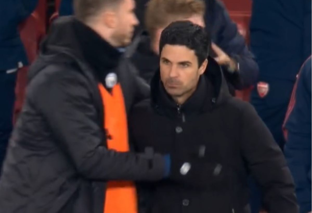 Tình huống va chạm giữa De Bruyne và HLV Arteta diễn ra ở phút 51, khi bóng lăn hết biên sau một pha xử lý hỏng của cầu thủ Arsenal. Kevin De Bruyne khẩn trương chạy ra để đưa bóng vào cuộc nhưng Mikel Arteta lại đưa chân đá trái bóng ra xa.