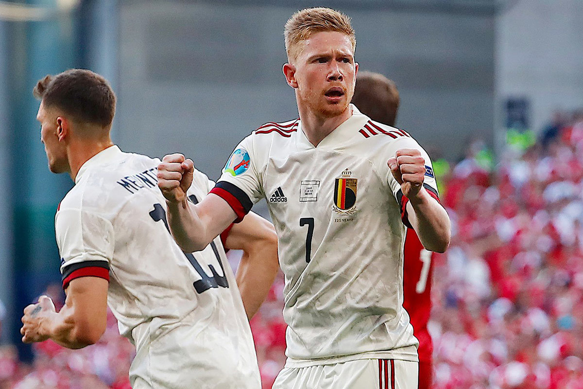 De Bruyne lập tức để lại dấu ấn với một bàn và một kiến tạo, dù chỉ vào sân từ hiệp 2. Tiền vệ này dọn cỗ để Thorgan Hazard đệm vào lưới trống quân bình tỷ số, trước khi dứt điểm một chạm bằng chân trái hiểm hóc khiến Schmeichel không kịp đổ người cản phá, ấn định chiến thắng 2-1 cho Bỉ.