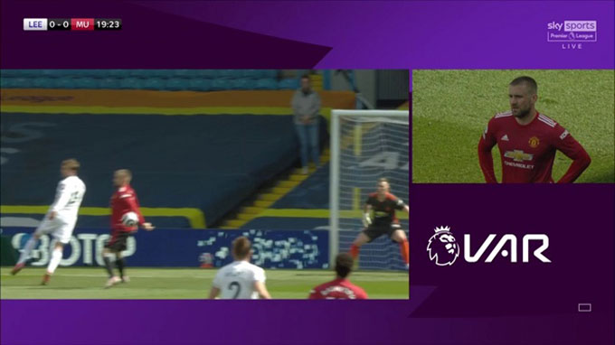 Phút 19, Leeds United cũng đưa ra câu trả lời bằng tình huống Harrison tạt từ cánh trái vào vòng cấm MU. Bóng chạm vào tay của Shaw, nhưng sau khi tham khảo công nghệ VAR, trọng tài lại cho trận đấu tiếp tục chứ không chỉ tay vào chấm phạt đền.