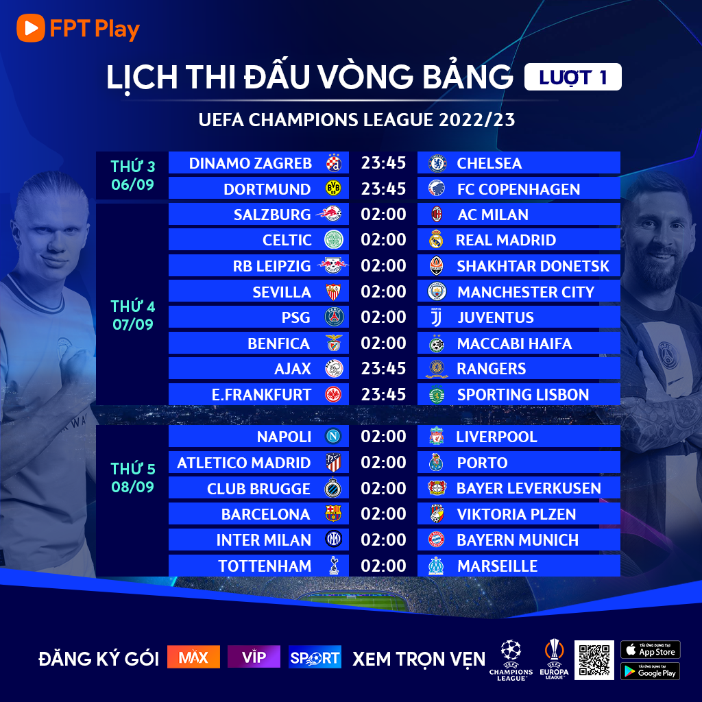 Các trận Sevilla - Man City, PSG - Juventus... sẽ là tâm điểm loạt trận mở màn vòng bảng Champions League 2022-2023 đêm nay và rạng sáng mai.