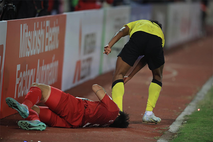 Vào hiệp 2, HLV Park Hang Seo đã thay trung vệ trái Thành Chung bằng Tiến Dũng với ý đồ củng cố hàng phòng ngự. Trận đấu đã nóng lên trên từng mét cỏ và đỉnh điểm là tình huống diễn ra ở phút 60, khi trọng tài người Nhật Bản – Sato Ryuji thổi phạt penalty đối với Malaysia. Chưa dừng lại, chỉ vài phút sau khi các cầu thủ đội khách đứng tranh cãi trên sân, ông Sato còn rút thẻ đỏ truất quyền thi đấu của Azam Azmin do anh này có pha đánh nguội rất kín với Văn Hậu. Quế Ngọc Hải đã không bỏ lỡ cơ hội nâng tỷ số lên 2-0 với một cú đá đánh lừa thủ môn đội khách ở phút 64.