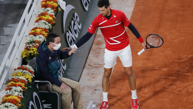 06/10/2020 13:22Djokovic đánh bóng trúng mặt trọng tài