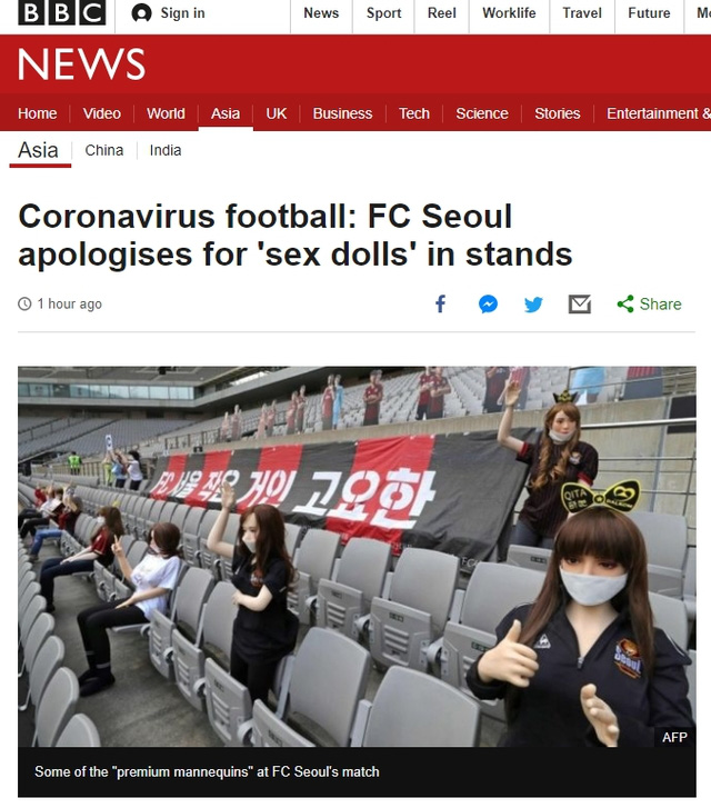 Ở trận đấu tại vòng 2 K.League 2020 giữa FC Seoul và Gwangju, đội chủ nhà đã đưa 30 búp bê bơm hơi lên khán đài sân Seoul World Cup. Theo lý giải của phía FC Seoul, mục đích của việc làm này nhằm giúp bầu không khí trận đấu bớt tẻ nhạt, khi mà K.League hiện tại không thể cho khán giả vào sân cổ vũ.