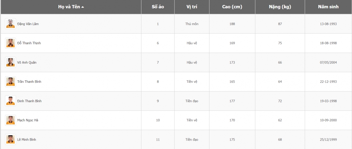 Theo danh sách đăng ký thi đấu của đội bóng này gửi lên VPF, có đến 19/27 cầu thủ đã từng có kinh nghiệm nhiều năm đá V-League. Trong đó có những cái tên tiêu biểu như thủ môn Văn Lâm, hậu vệ Thanh Thịnh, tiền vệ Văn Thuận, tiền đạo Đinh Thanh Bình, Phạm Văn Thành.