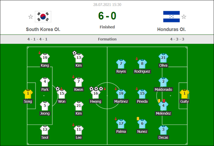 Tạo ra thế trận lấn lướt, Olympic Hàn Quốc dễ dàng đánh bại Olympic Honduras với tỷ số đậm 6-0 để giành vé vào tứ kết môn bóng đá nam Olympic 2020.