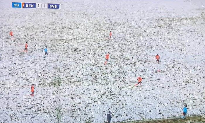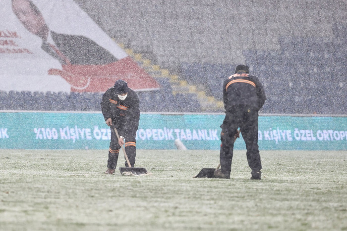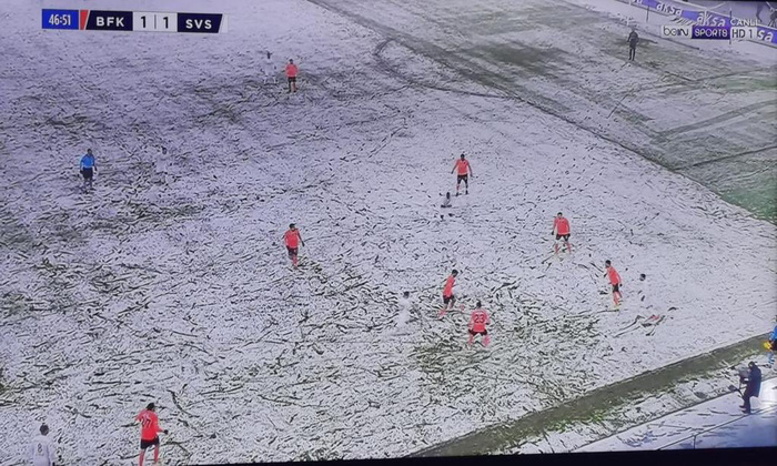 Mưa tuyết nặng hạt khiến khán giả truyền hình gần như không thể quan sát các cầu thủ CLB Sivasspor trên sân trong trận đấu ở vòng 18 giải VĐQG Thổ Nhĩ Kỳ.