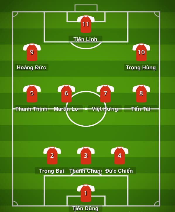 Trước mặt Tiến Dũng sẽ là những cái tên đã quen mặt với NHM bóng đá Việt Nam bao gồm các trung vệ: Nguyễn Đức Chiến, Nguyễn Trọng Đại và Nguyễn Thành Chung.
