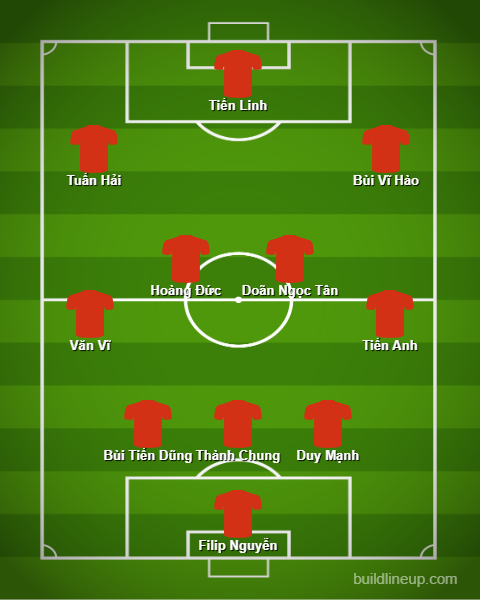2 bên cánh dự kiến dành cho 2 nhân tố “cũ mà mới” là Văn Vĩ và Trương Tiến Anh. Cặp đôi này từng lên tuyển dưới thời HLV Park Hang-seo và Troussier nhưng đây mới là kỳ AFF Cup đầu tiên họ góp mặt.