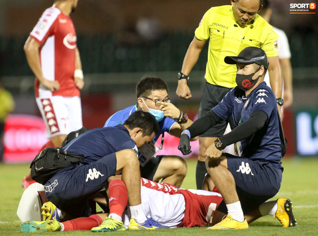 Sau khi khám và sơ cứu nhanh, bộ phận y tế của CLB TP.HCM yêu cầu đội khiêng cáng vào sân. Lâm Ti Phông được đưa thẳng lên xe cứu thương để đi đến bệnh viện.