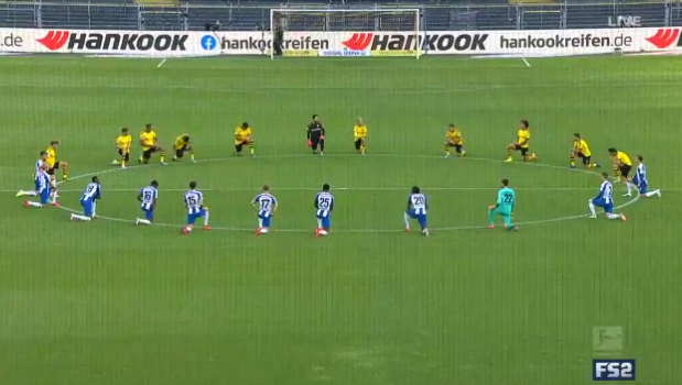 Cầu thủ hai đội ủng hộ "Black lives matter". Ảnh chụp màn hình.