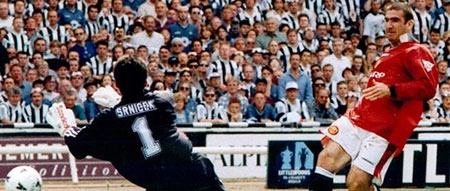 | Srnicek trong một lần đối đầu với Cantona của M.U |